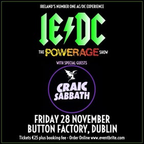 As seen in the RTÉ documentary, “The Great Pretenders”, Ireland’s most electrifying AC/DC tribute act IE/DC make their return to Dublin’s Button Factory on Friday 28th November 2025 performing the classic album “Powerage” in full! Special guests on the night will be the amazing Craic Sabbath bringing their awesome show honouring the godfathers of metal Black Sabbath.